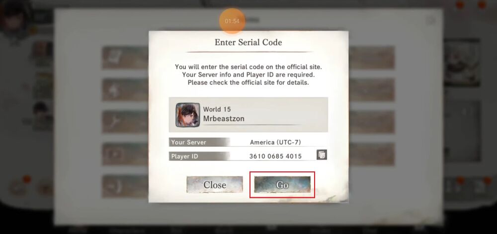 Step 4: Let's copy Player ID. Then choose "Go" to go to the official gift code redemption page.
