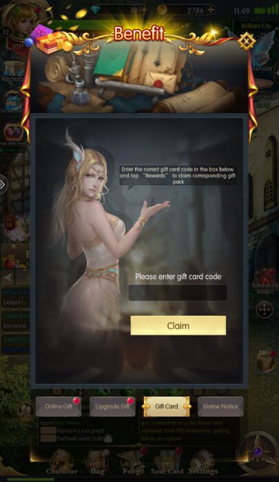 Step 3: Continue to select item “Gift Card”. Enter the gift code in the table above into the text box. Then press "Claim" to get your reward.
