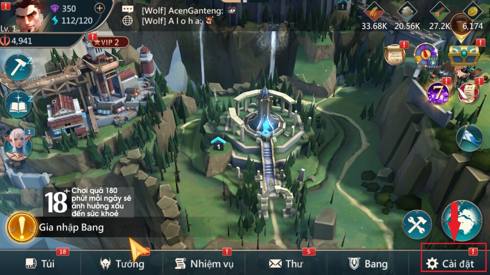 Step 2: At the home screen, click on the item Setting located in the lower right corner of the screen.