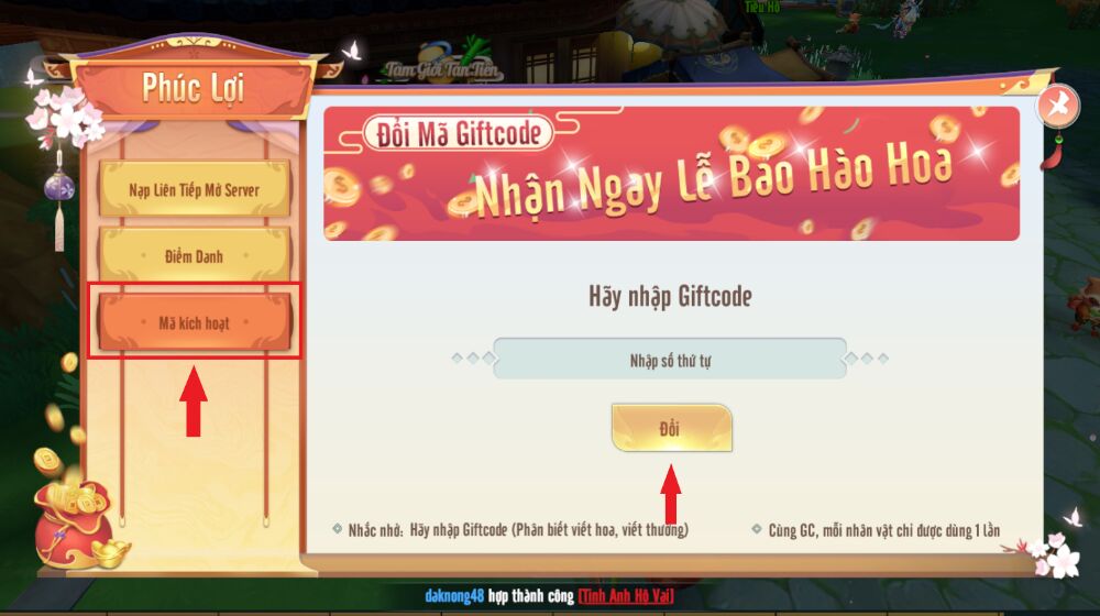 To redeem the Mong Kiem Tieu Dao gift code, follow these simple steps: