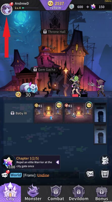 Step 2: At the main screen, select Avatar icon The player is located in the top left corner of the screen.
