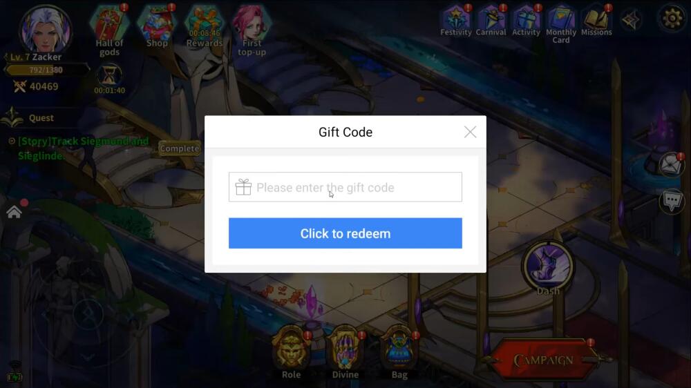 To proceed to redeem the Myth Gods of Asgard gift code, follow these simple steps: