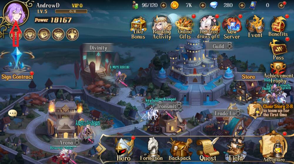 Step 2: On the main screen, click Avatar icon The player is located in the top left corner of the screen.