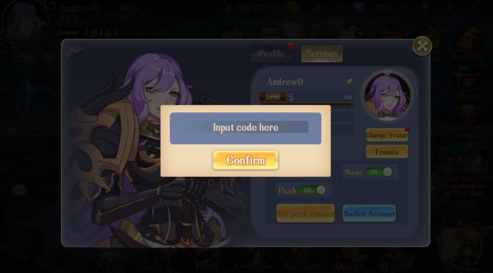 Step 5: Enter the gift code above in the text box. Then press "Confirm" to get your reward.
