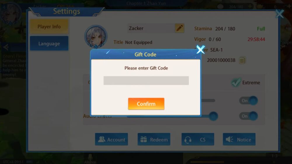 Step 4: Enter the gift code in the table above into the text box. Then press "Confirm" to get your reward.