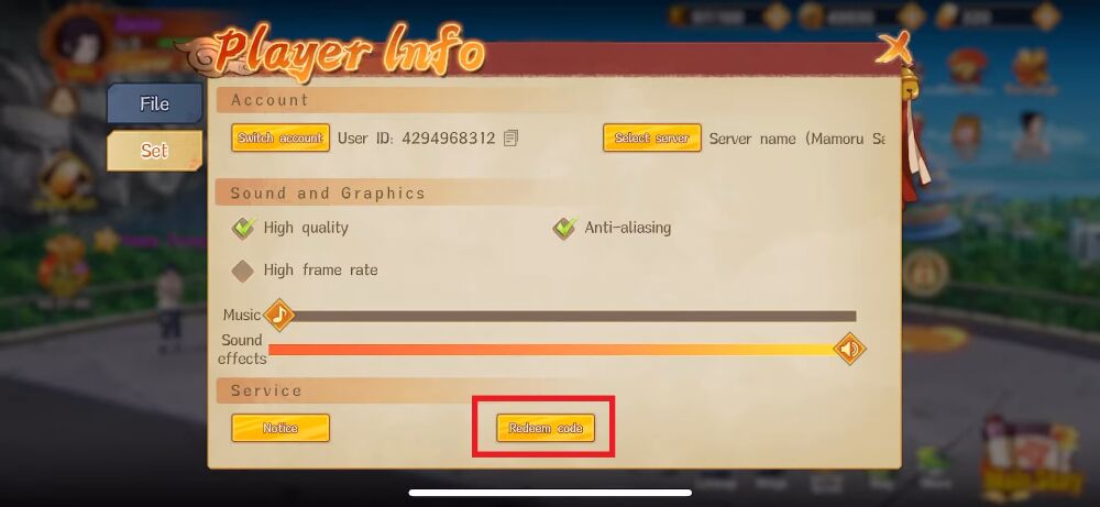 Step 3: Select item "Set". Then choose “Redeem Code”.