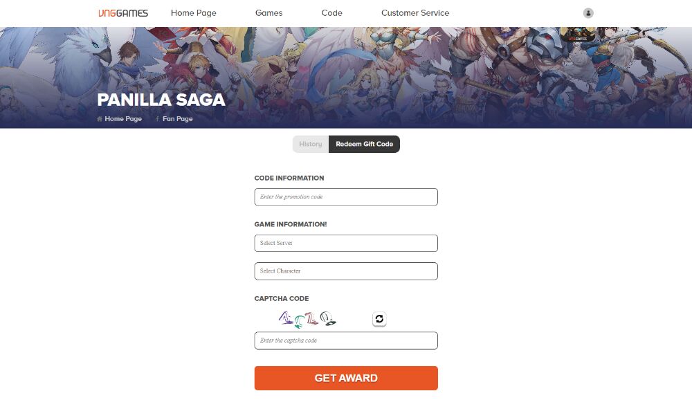 Step 1: Go to Panilla Saga's official Gift Code redemption page.