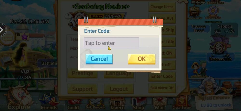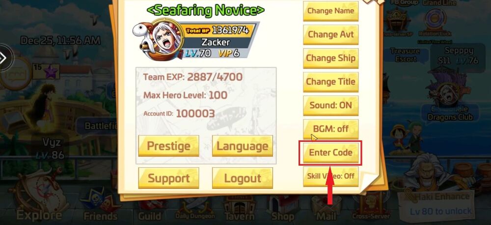 | Instructions for exchanging Code Pirate Legends Great Voyage