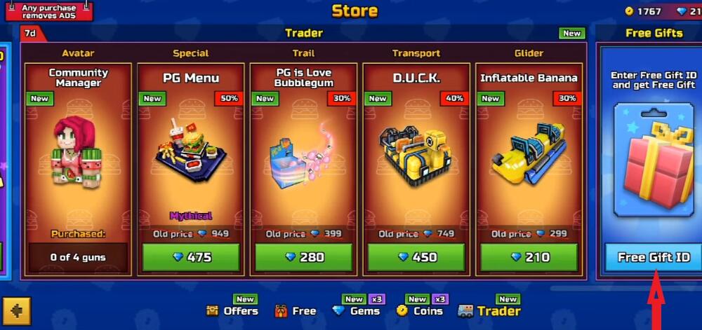 To redeem your gift code in Pixel Gun 3D, follow these steps: