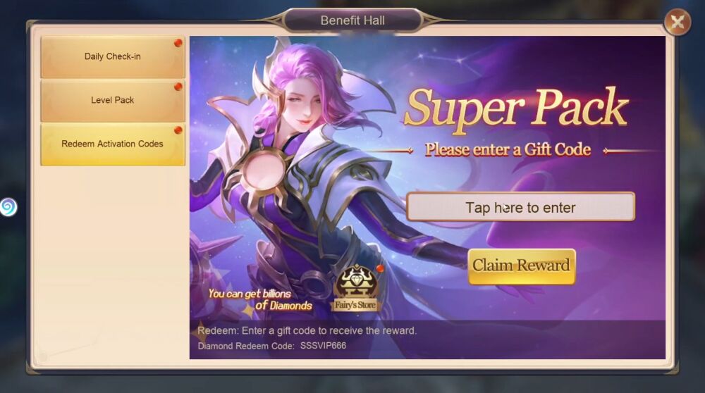 Step 3: Select item “Redeem Activation Codes”. Enter the gift code from the table above into the text box. Then choose “Claim Reward” to get your reward.