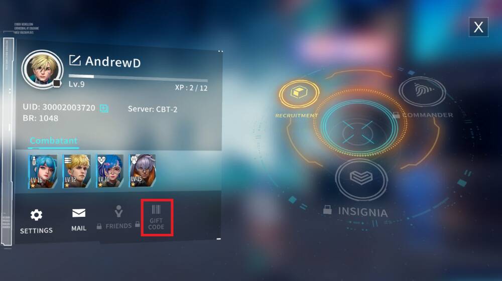 Step 3: Select item “GIFT CODE”. Note that only when you reach level 20 can you redeem the Gift Code.