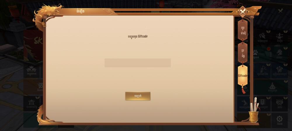 Step 3: Select item “Giftcode”. Enter the gift code in the table above into the text box. Press "Confirm" to receive rewards.