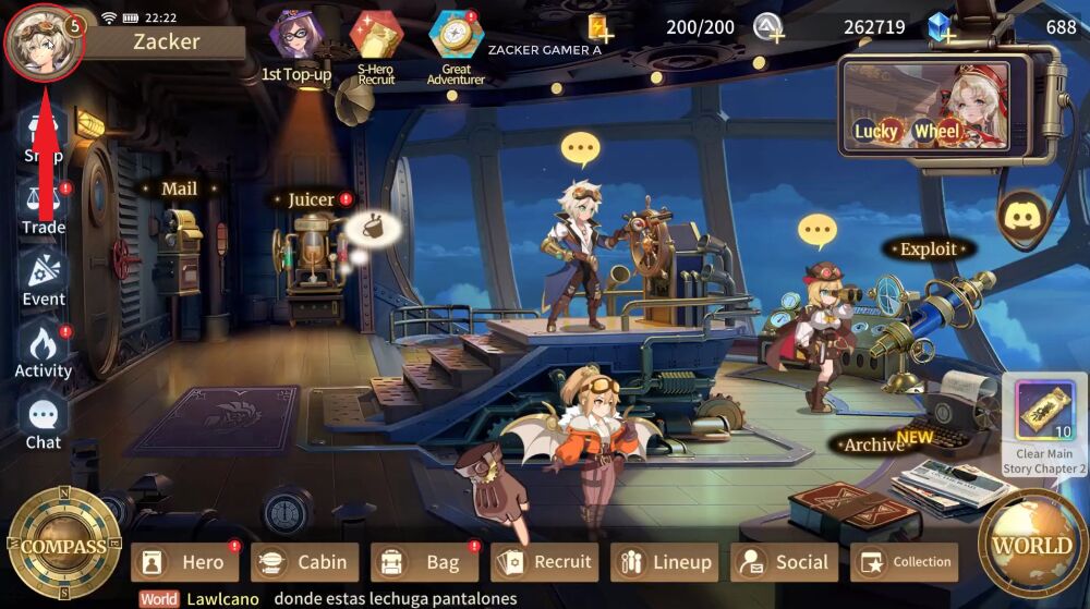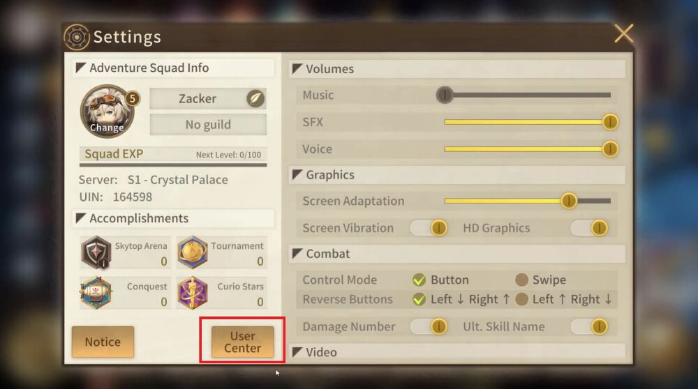 Step 2: At the main screen, click Avatar icon The player is located in the upper left corner of the screen.