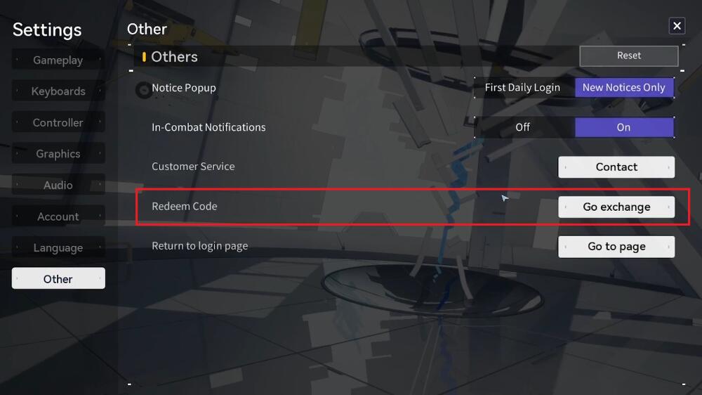 Step 3: Select item "Other". Click section “Go exchange” in the Redeem Code section.