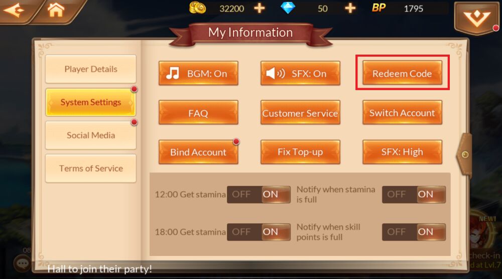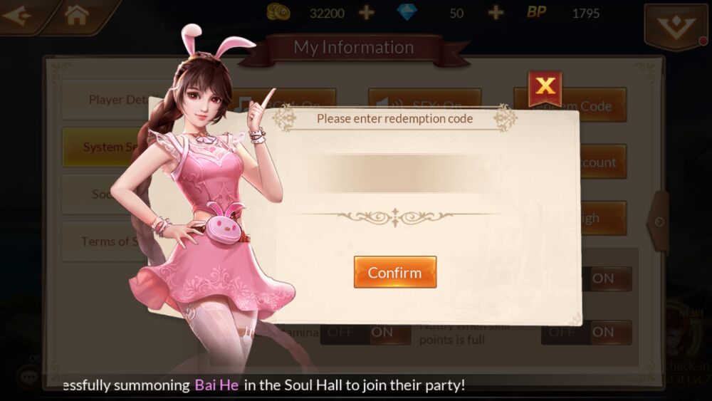 Step 5: Enter the gift code from the list above into the text box. Then press "Confirm" to get your reward.