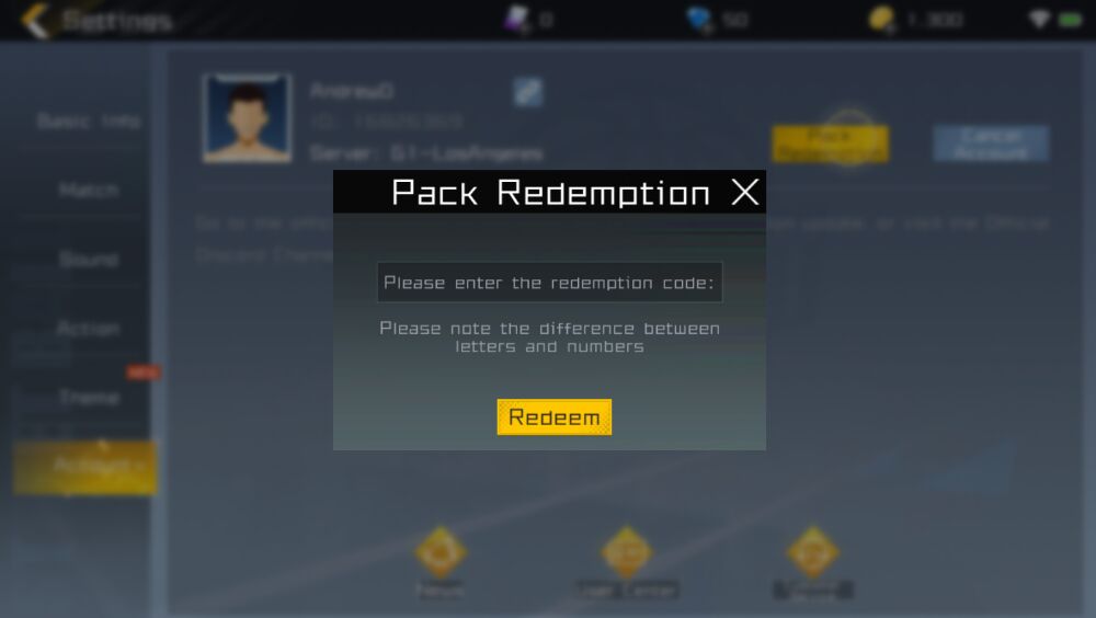 Step 3: Select item "Account" located at the bottom. Then click on the section "Pack Redemption".