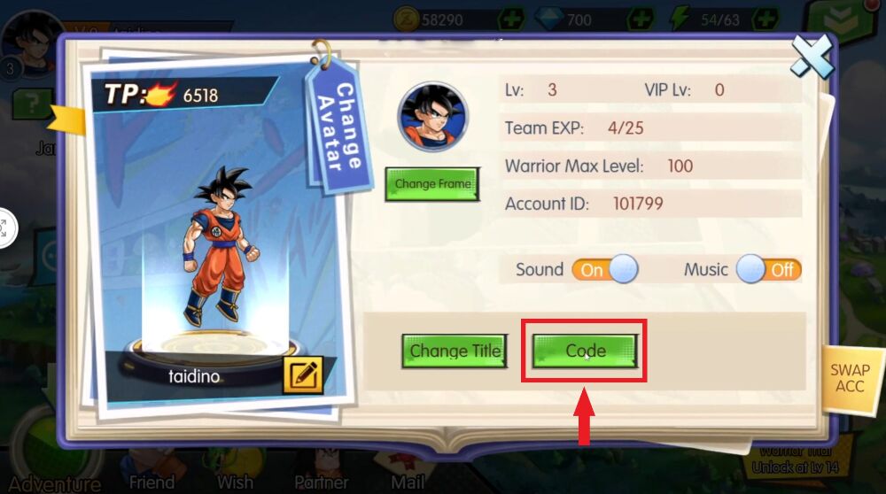 | Instructions for redeeming Super Dragon Warriors Fight Code