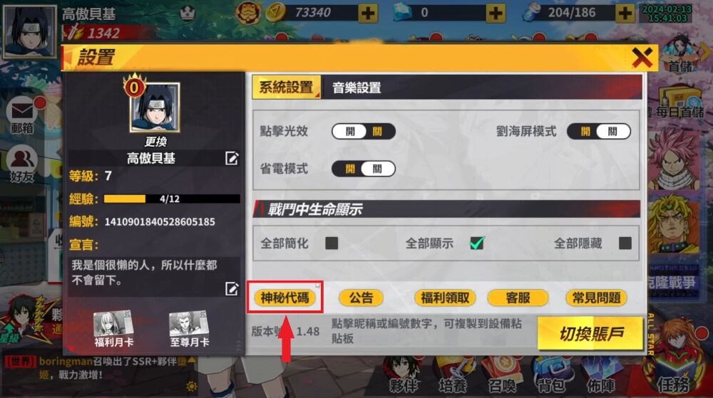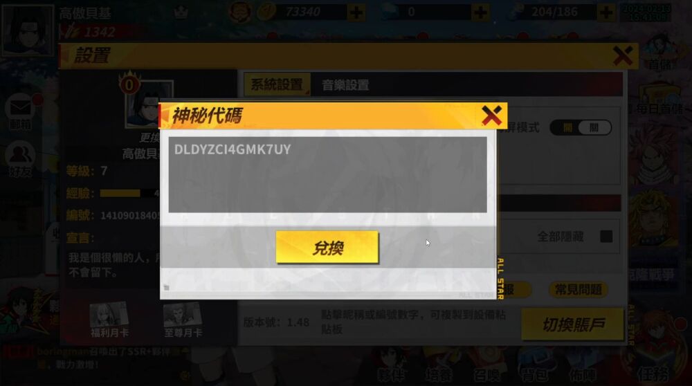 Step 4: Enter the gift code in the table above into the text box. Then press "OK" to receive rewards.