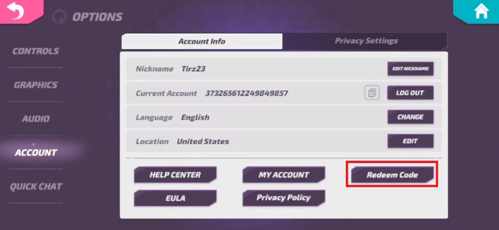 – Then tap “Redeem Code” and enter the correct code or copy it in the empty box.
