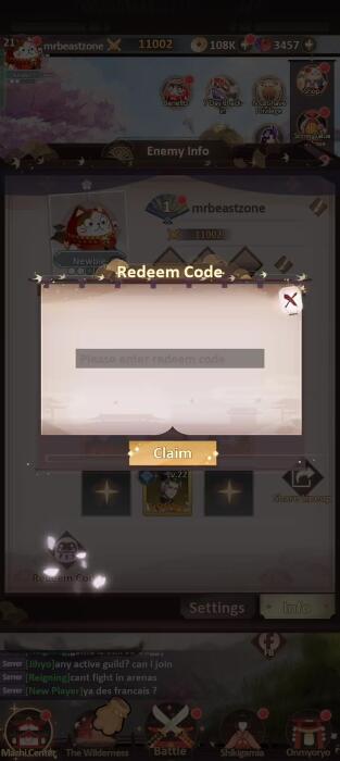 Step 4: Enter the gift code in the table above into the text box. Then press "Claim" to get your reward.