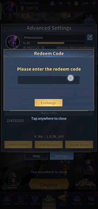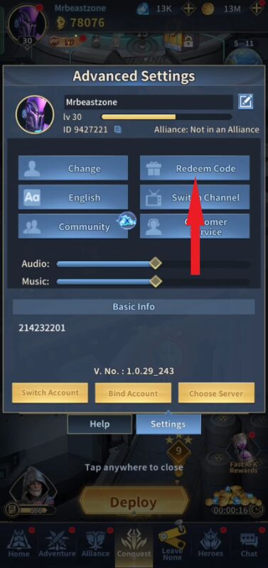 To redeem the Titan War gift code, follow these simple steps we shared: