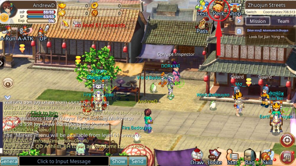Step 2: At the home screen, click on the item "Perk" located in the upper right corner of the screen.