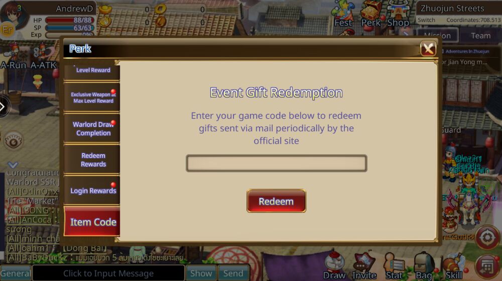 Step 3: Scroll to the bottom, select the item “Item Code”. Then enter the gift code in the table above into the text box. Finally click “Redeem” to claim your own rewards.