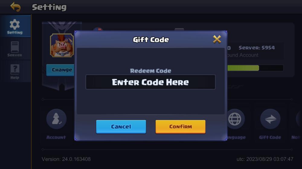 Step 4: Enter the gift code in the table above into the text box. Then choose "Confirm" to receive rewards.