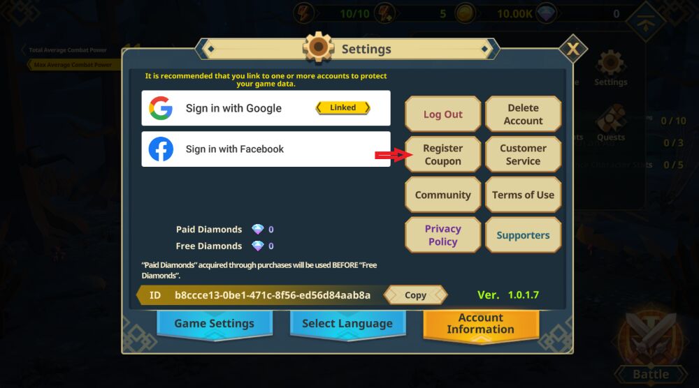 - Finally choose Register Coupon and enter the gift code above to get the reward.