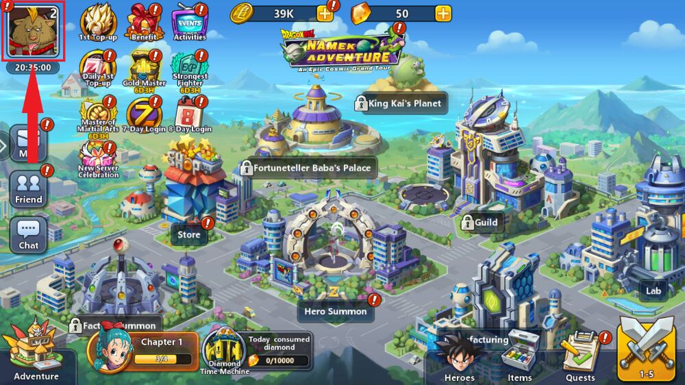 Step 2: At the home screen, click Avatar icon The player is located in the top left corner of the screen.