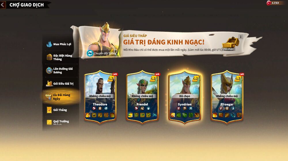 Syndrion is a legendary champion whose skill set makes it possible for you Increases normal attack speed up 2 times. Normally, players will often combine Syndrion with Ffraegar to increase the critical rate of normal attacks to maximize Syndrion's rapid fire ability.
