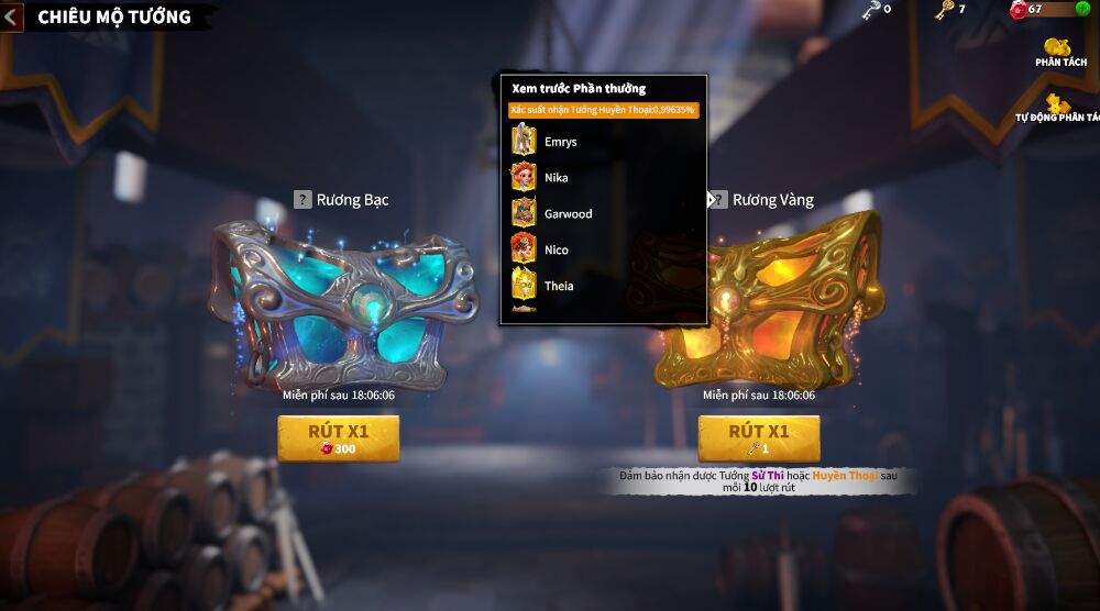 Using golden key to recruit champions at the liquor store will give you a chance to get champion Theia.