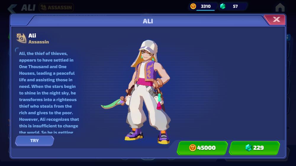 Ali can be purchased with 45.000 Gold or 229 Gem from the Smash Legends in-game store.