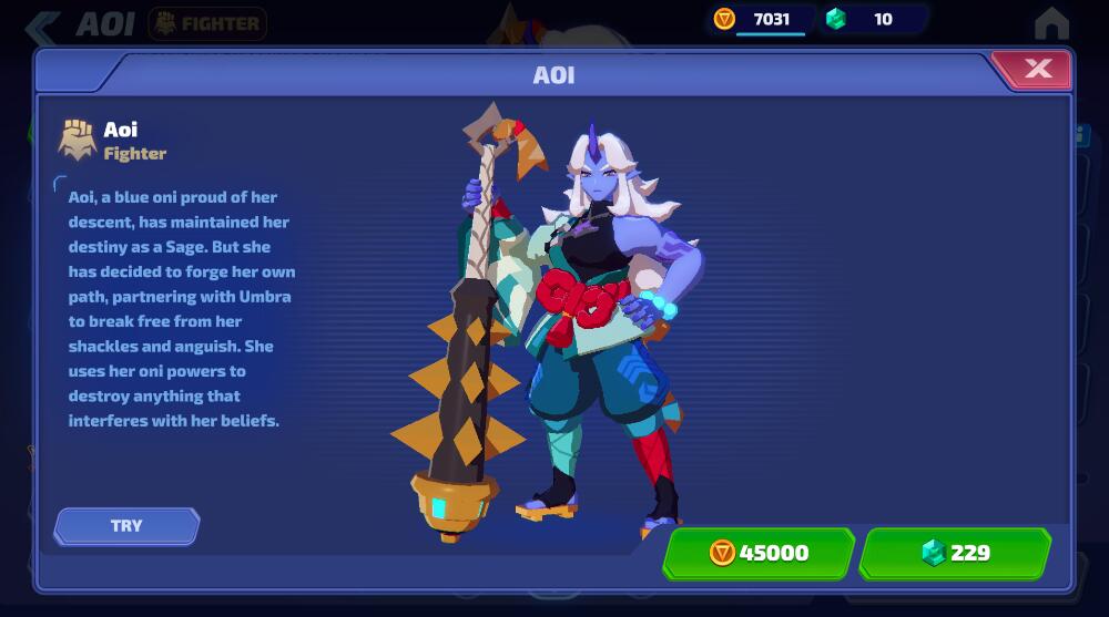 Aoi is a legend as a Fighter in Smash Legends. Through the article Tutorial Build Aoi Our Smash Legends, you can check out the basics, skills, abilities and how to build Aoi legend to be the strongest in Smash Legends game.