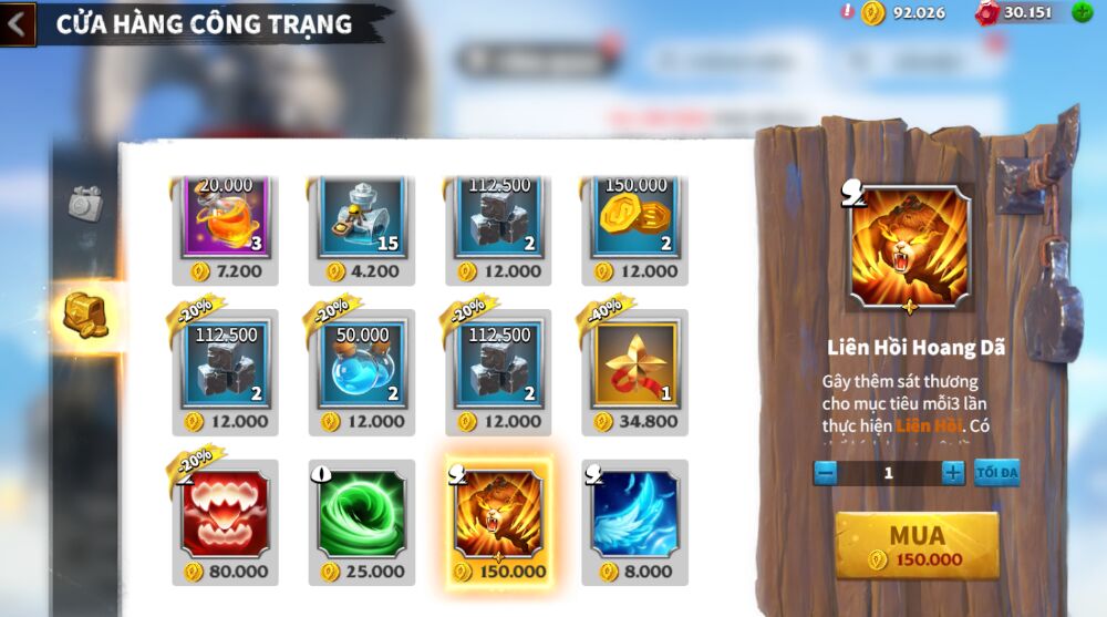 You can save credit points each week to buy skills Repeatedly , and Wild Lotus from the alliance store. As for the Fierce Strike skill, you can use Coins obtained from selling other skills to buy.