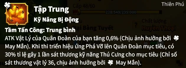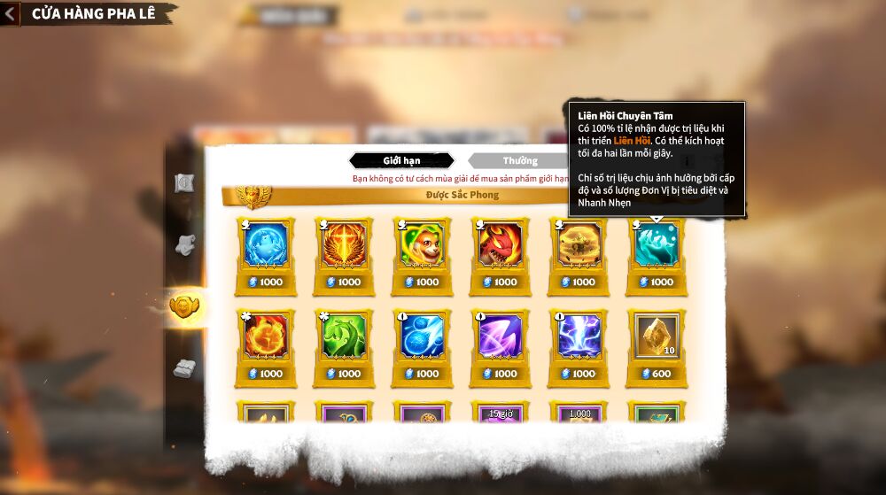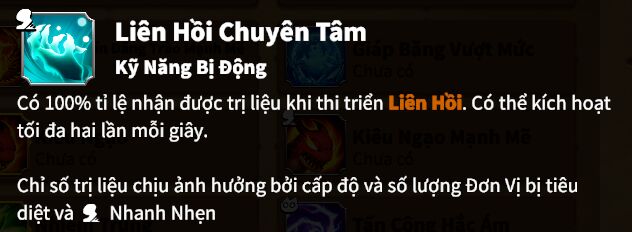 The 4th and 5th skills should be Strong Focus , and Clutches. Next to the end of the season, use 1000 Crystal points to buy the skill Lien Hoi Concentration in the seal shop at the start of season 2.