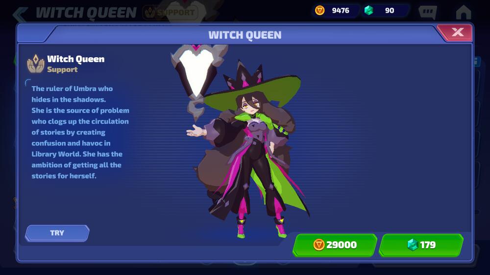 Witch Queen can be purchased with 29.000 Gold or 179 Gem from the Smash Legends in-game store.