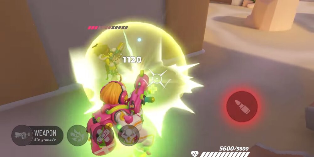 Chemist can heal or damage to multiple allies or enemies at once. Grenades naturally move slower than bullets. So it will be difficult to heal allies like Yaa or Aleta who have superior movement speed. Note, however, that the healing is halved when she throws the gems at herself. So it's much better to let your allies play on the front line. Where BioGrenades can be maximized.