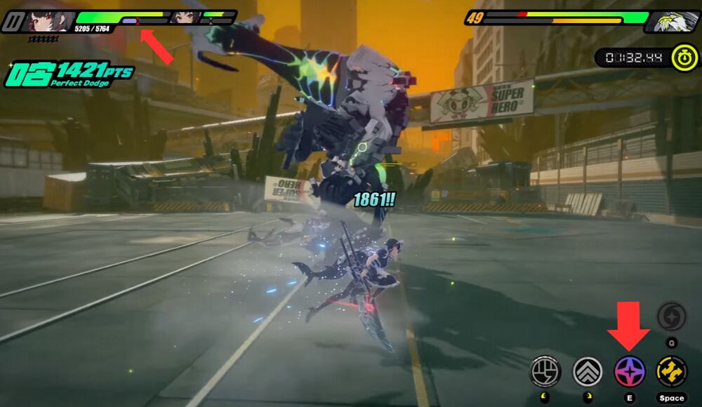 when the Decibel index reached 3000, you can press [Q] to activate the Finishing Strike of the character you are using.