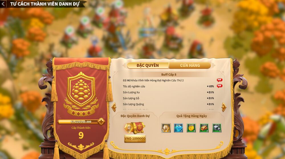 To reach this level, you need to accumulate 35,000 pts honor. This is really worth it because you will also be given a legendary hero every day, which you should choose a hero that you cannot miss through the golden key. Additionally, you should exploit the opportunity to purchase items from the weekly Member shop using your resources.