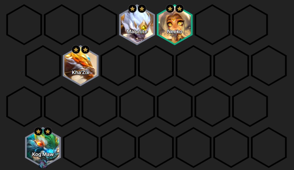 Let's try to start the game with winning streak to keep the best blood and profits. If defensive equipment pieces drop, you can optimize the defense on Malphite or Neeko and equip attack on Kog'Maw to win.