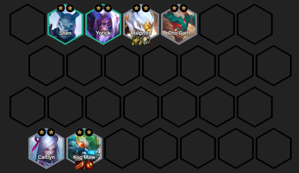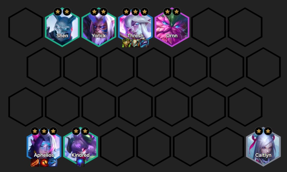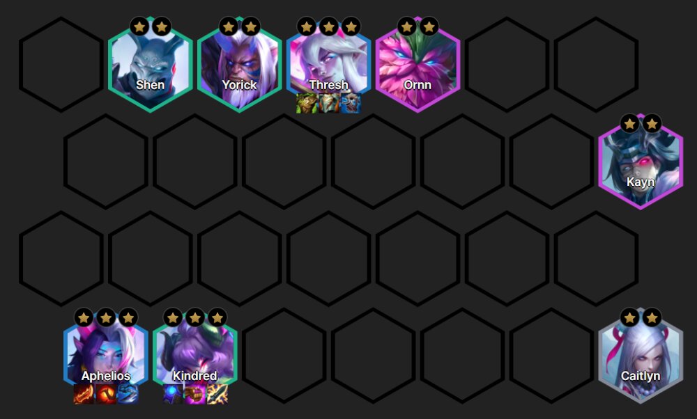 Shen, Yorick, Thresh, Ornn, Kayn, Aphelios, Kindred, Caitlyn.