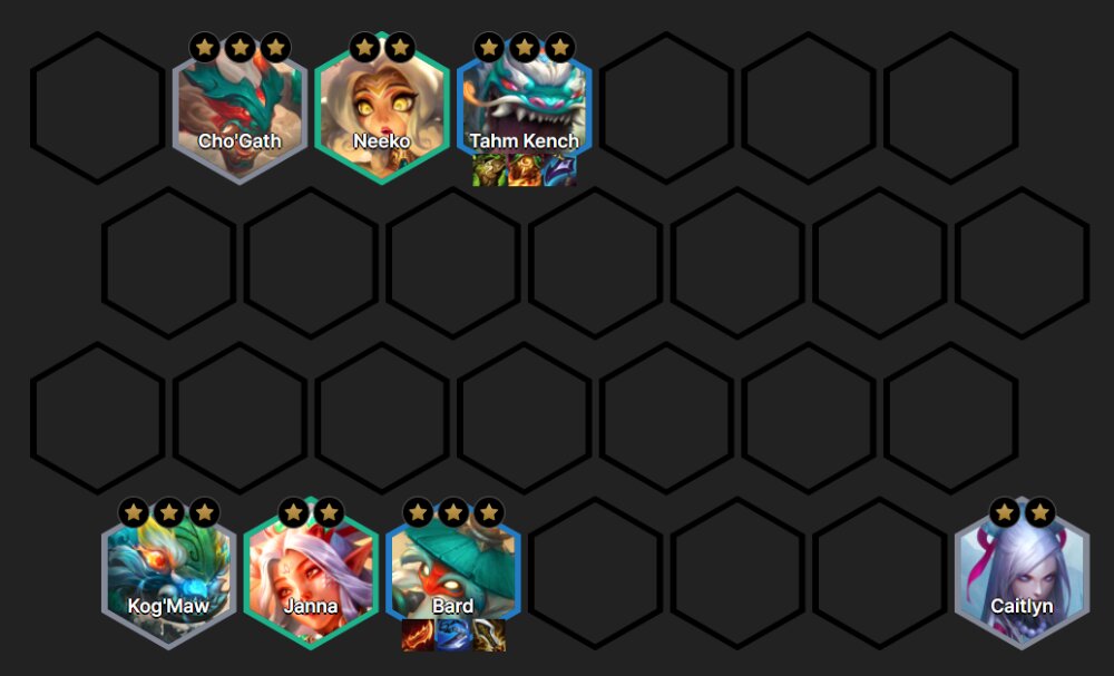 Start the game with short losing streak to have priority in choosing equipment for the shopping round. Try to choose multiple Wooden Bow components to use on Bard in the later stages. If defensive equipment pieces fall out, you can optimize the defense equipment on Cho'Gath or Malphite to increase resistance.