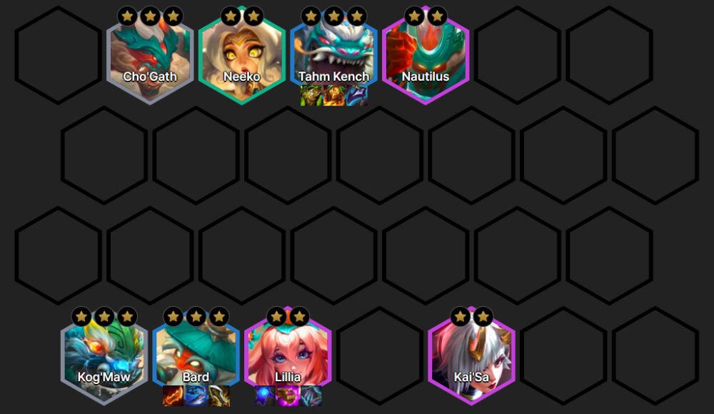 Kog'Maw, Cho'Gath, Neeko, Tahm Kench, Bard, Lillia, Nautilus, Kai'Sa.