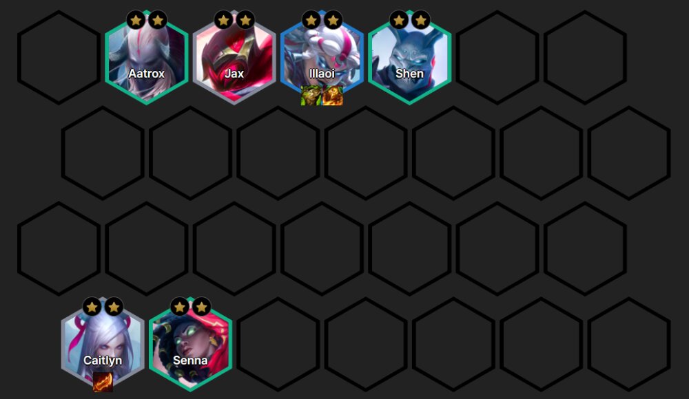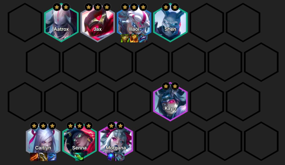 Caitlyn, Jax, Aatrox, Senna, Shen, Illaoi, Kayn, Morgana.