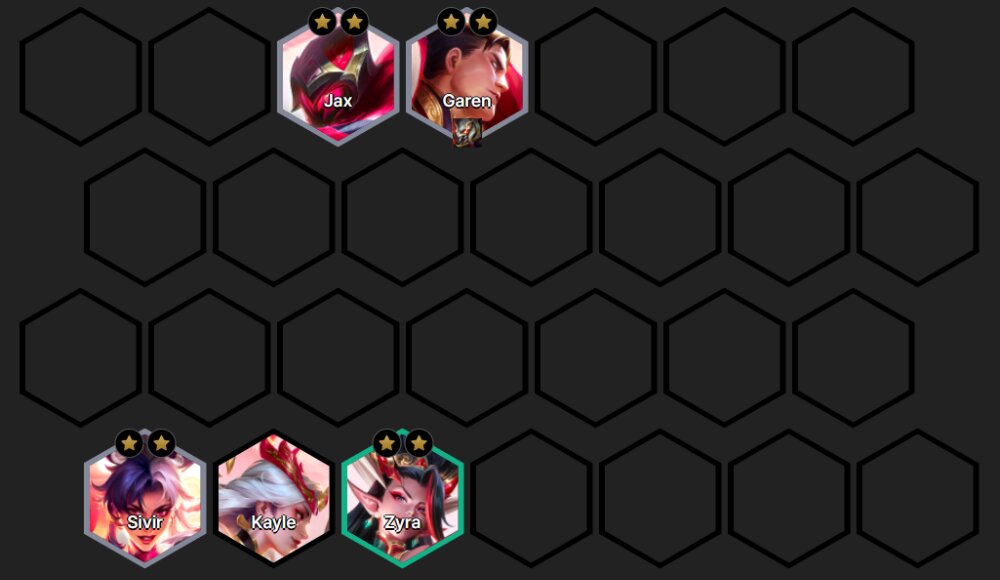 Start the game with losing streak to have priority in choosing equipment for the shopping round. Because you will need a lot of wooden bow pieces to optimize the formation. Use equipment for Garen to keep your team healthy. Accumulate gold , and Don't be hasty roll Garen 3 stars.