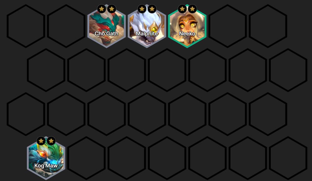 Start the game with losing streak to have priority in choosing equipment for the shopping round. Because you will need a lot of wooden bow pieces and tears to optimize the squad. If pieces of defensive equipment fall, you can optimize the defense on Cho'Gath or Malphite to keep the best health.