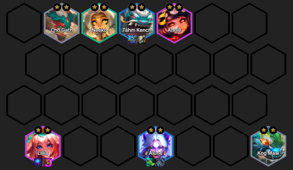 In this lineup, Hwei leaves main damage carry in the late game and Lillia will provide damage support in the backline. With the ability to increase Mythic's health, Tahm Kench will be a sturdy tanker to block all damage that enemies aim at Hwei and Lillia in the backline.