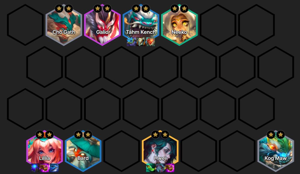 Cho'Gath, Kog'Maw, Neeko, Bard, Tahm Kench, Galio, Lillia, Hwei.