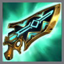 | Activated: Commands the blades to rush towards the 3 enemies with the lowest Health, dealing physical damage and applying on-hit effects. Intrinsic: The attack sends blades bouncing between enemies, dealing physical damage and 30% Cleavage over 5 seconds. Cast after every 8 attacks. Irelia converts 25% of her bonus attack speed into blade speed and 70% into Attack Power. Skill Damage: 300/300/2000% AD + 100% AP Internal Damage: 150 / 150 / 700% | |